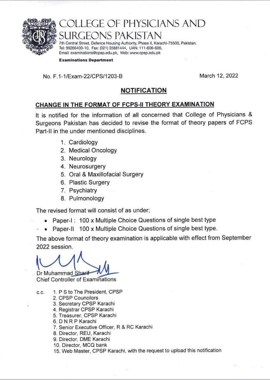 News Changes in the format of FCPS-II theory Examination Changes in the format of FCPS-II theory Examination