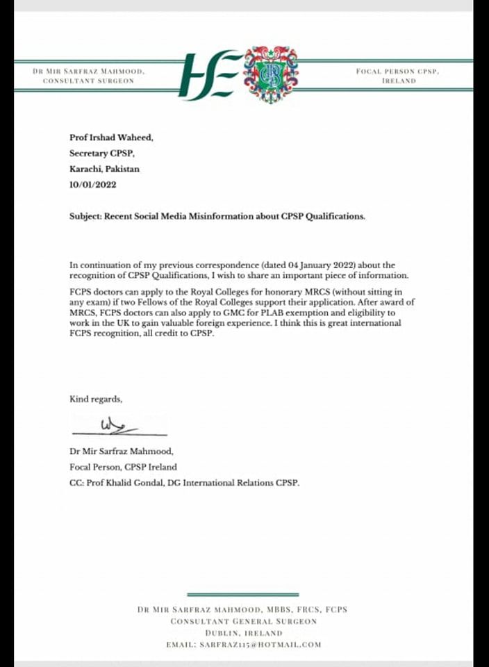News Recent Social Media Misinformation about CPSP Qualification An official Letter regarding Social Media Misinformation about CPSP Qualification